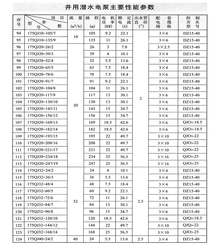 ZAQJ長(zhǎng)軸深井泵、深井長(zhǎng)軸泵性能參數(shù)