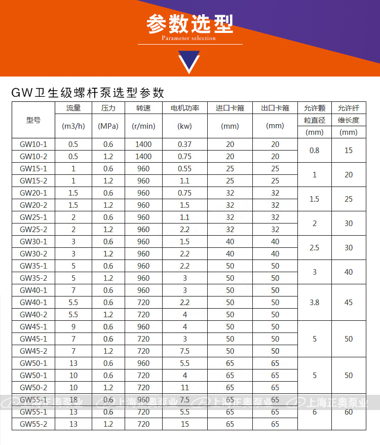 五、衛(wèi)生級螺桿泵技術(shù)參數(shù):