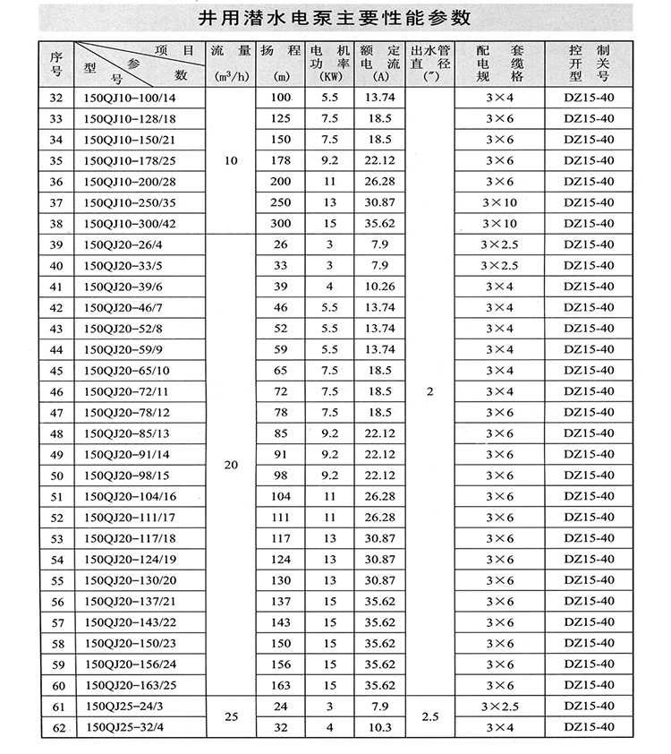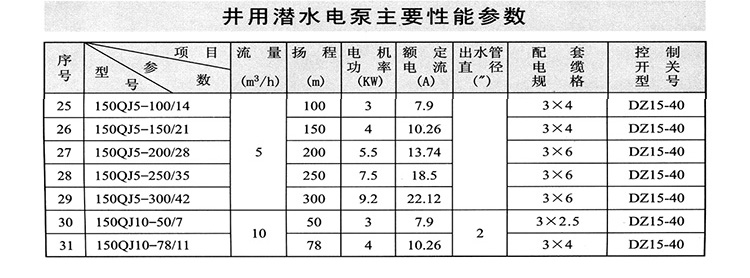 150QJ深井泵主要用于深井提水、增壓,它廣泛適用于農(nóng)田灌溉、城鄉(xiāng)生活區(qū)、工礦企業(yè)給排水、建筑工程降水、河流、水庫、噴泉、制冷系統(tǒng)、溫泉浴場、綠化等各種水利工程設(shè)施。其主要特點是電機和水泵連為一體潛入水中工作,具有使用、安裝、維護(hù)方便、根據(jù)不同要求,可提供不銹鋼鑄造、不銹鋼沖壓焊接、鑄銅、鑄鐵等不同材質(zhì)。該水泵對外徑具有嚴(yán)格限制,為水潤滑,不會出現(xiàn)電機密封泄露,污染水源的情況。