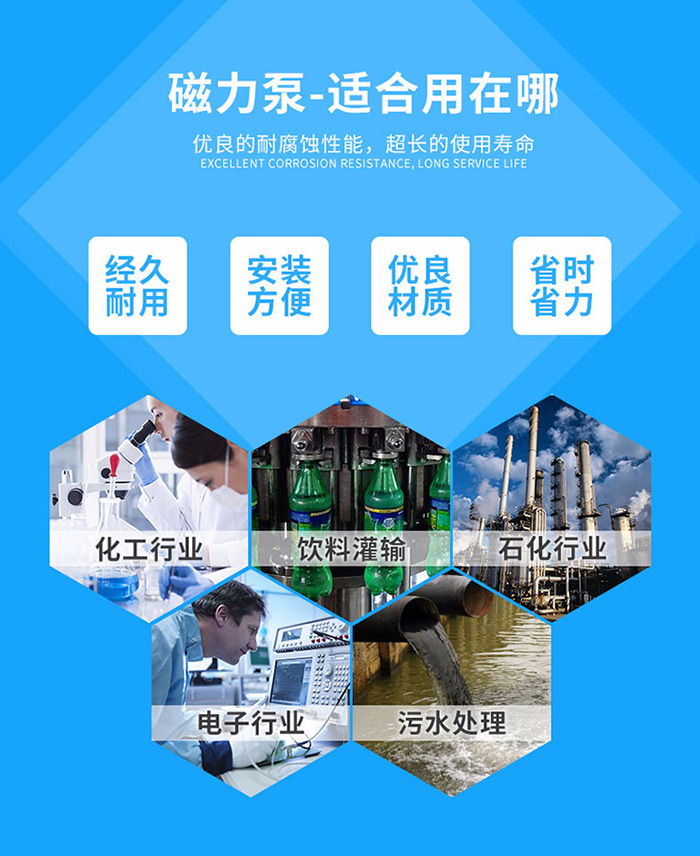 不銹鋼磁力泵結(jié)構(gòu)緊湊、外形美觀、體積小、噪音低、運行可靠、使用維修方便?蓮V泛應(yīng)用于化工、制藥、石油、電鍍、食品、電-影照相洗印、科研機(jī)構(gòu)、國防工業(yè)等單位抽送酸、堿液、油類、稀有貴重液、毒液、揮發(fā)性液體,以及循環(huán)水設(shè)備配套、過濾機(jī)配套。特別是漏、易燃、易爆液體的抽送,選用此泵則更為理想。