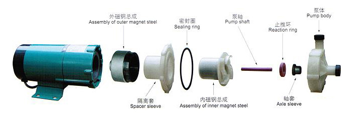 此泵運轉(zhuǎn)是在連軸上和葉輪上分別裝配有磁性材料而互相吸引偶合,無需配以傳統(tǒng)機械軸封,因而是完全密封的。電動機轉(zhuǎn)動扭力是通過主動磁及從動磁的引力帶動葉片工作運轉(zhuǎn),F(xiàn)今慣用的磁力驅(qū)動泵極大的缺點是在缺液情況下絕對嚴禁運轉(zhuǎn)否則整機將毀壞,給使用者增添不必要的麻煩和煩惱。它采選了一種特別設(shè)計的特配方陶瓷作軸承,具有極強的耐磨性和抗腐蝕性,使其先進性能和質(zhì)量安全得以絕對的保證。