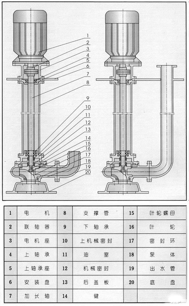 8、泵有單管安裝和雙管安裝兩種,支承件有圓盤和方盤安裝,適合不同需要。