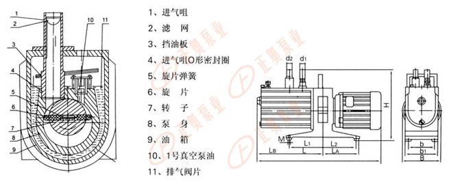 2XZ型泵具有體積小、重量輕、噪聲低、起動方便等優(yōu)點。此外,還有防止返油的措施(2XZ-8無)和防止油封漏油污染場地的措施。