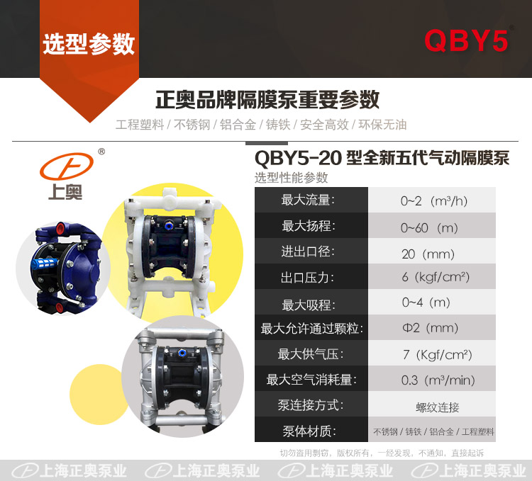 產(chǎn)品名稱:QBY5-20型氣動隔膜泵【全新五代氣動隔膜泵】 如用戶有特殊要求,聯(lián)系電話021-66525777,以方便用戶選型,正確使用上海正奧品牌隔膜泵 |