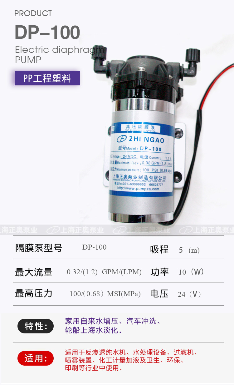 DP微型電動(dòng)隔膜泵適用于家用自來(lái)水增壓、汽車(chē)沖洗、輪船上海水淡化,DP隔膜泵適用于反滲透純水機(jī)、水處理設(shè)備、過(guò)濾機(jī)、噴霧裝置、化工計(jì)量加液及衛(wèi)生、環(huán)保、印刷等行業(yè)中使用。