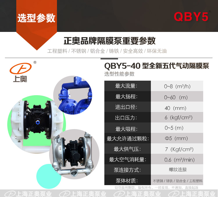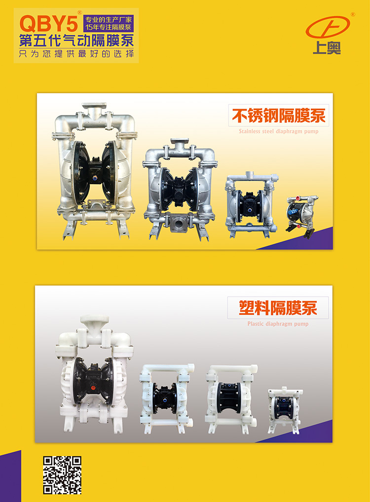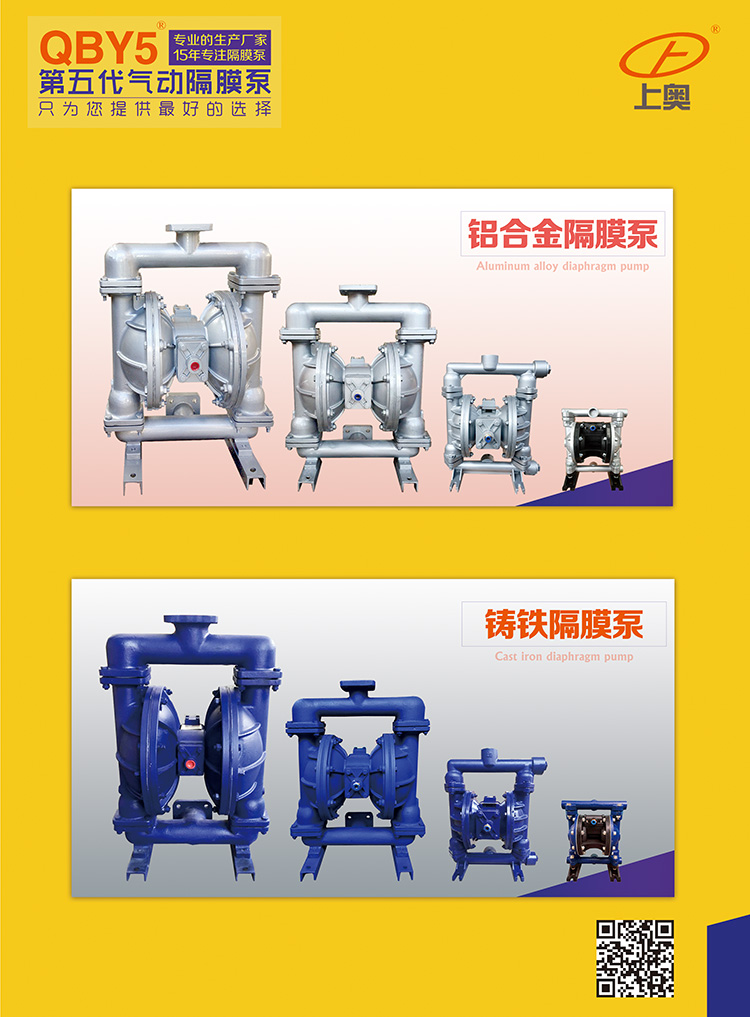 具有使用壽命長、無需加油的優(yōu)點,即能抽送流動的液體,又能輸送一些不易流動的介質(zhì),具有自吸泵、潛水泵、屏蔽泵、泥漿泵和雜質(zhì)泵等輸送機(jī)械的許多優(yōu)點。正奧公司生產(chǎn)的QBY5系列氣動隔膜泵是一種新型的輸送設(shè)備。采用壓縮空氣為動力源,對于各種腐蝕性液體,帶顆粒的液體,高粘度、易揮發(fā)、易燃、劇毒的液體,均能抽光吸盡。