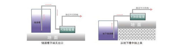 FZB自吸泵的過(guò)流部件全部采用氟塑料制造,且又具有自吸功能,因此,F(xiàn)ZB自吸泵的用途廣泛,如:將地下槽中的腐蝕性液體抽送至目標(biāo)地點(diǎn),將底端無(wú)出口的酸堿槽中的酸堿抽送到目標(biāo)地點(diǎn),或用于多個(gè)酸槽之間的循環(huán),或用于卸酸等等。
