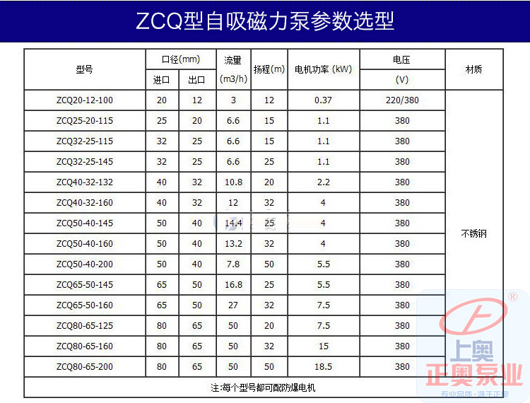 ZCQ型自吸式磁力泵性能參數(shù)表