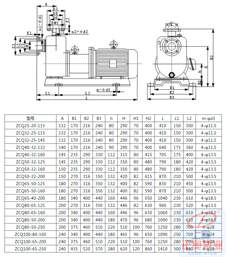| ZCQ50-32-125 | 145 | 235 | 290 | 330 | 112 | 350 | 80 | 480 | 790 | 180 | 420 | 4-φ13.5 |