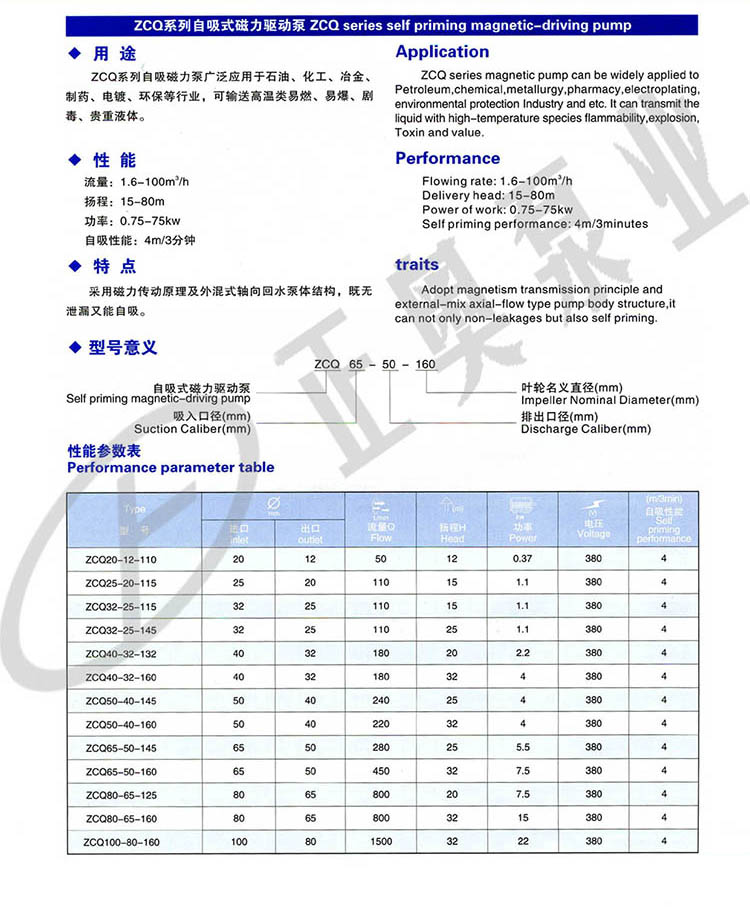 ZCQ型自吸式磁力泵型號(hào)意義