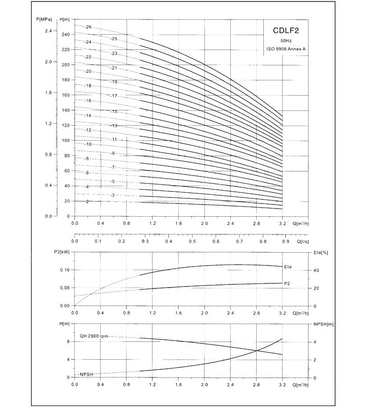CDLF-2不銹鋼立式多級(jí)泵性能參數(shù)選型: