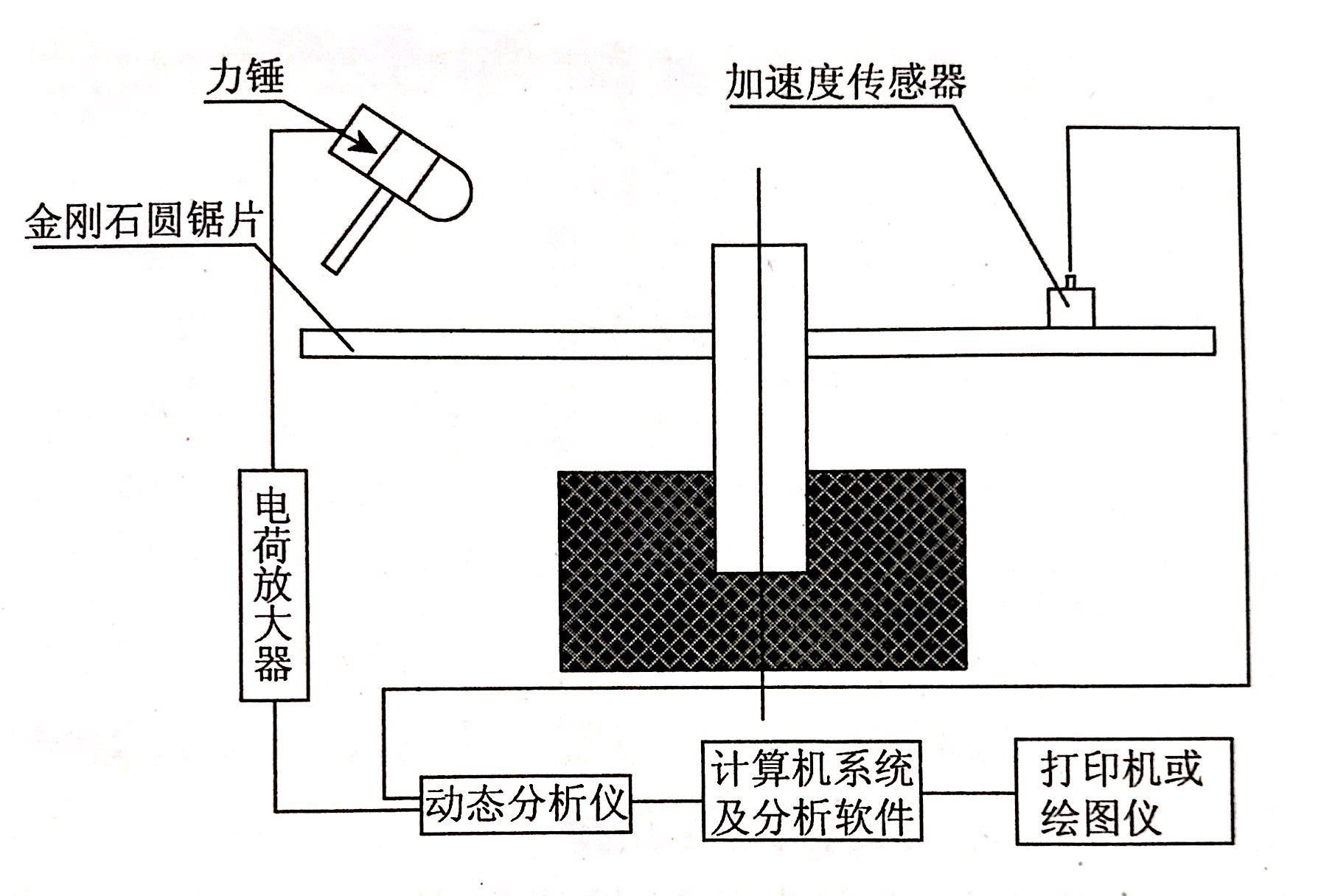 花崗巖鋸片廠家對模態試驗一般的激勵方式有單點和多點激勵。為了測得花崗巖鋸片的固有頻率,本試驗激勵的產生方法是通過采用力錘單點激振。